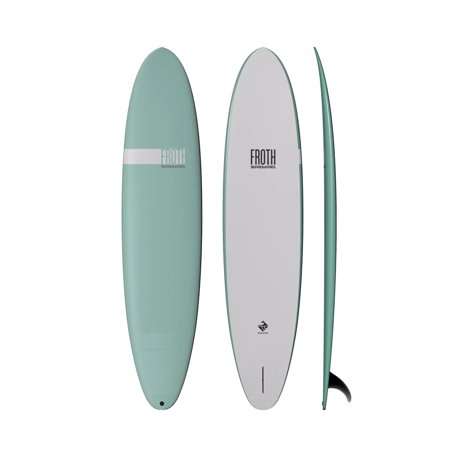 Designed to catch more waves and have a good time! The Froth 9′ longboard is a stable platform for surfers of all abilities. This SUP surfing board caters to all shapes and sizes, and its light yet durable construction makes it extremely user-friendly and fun. Its soft EVA outer skin wraps around a fully glassed Expanded Polystyrene (EPS) foam core, giving it optimal performance.