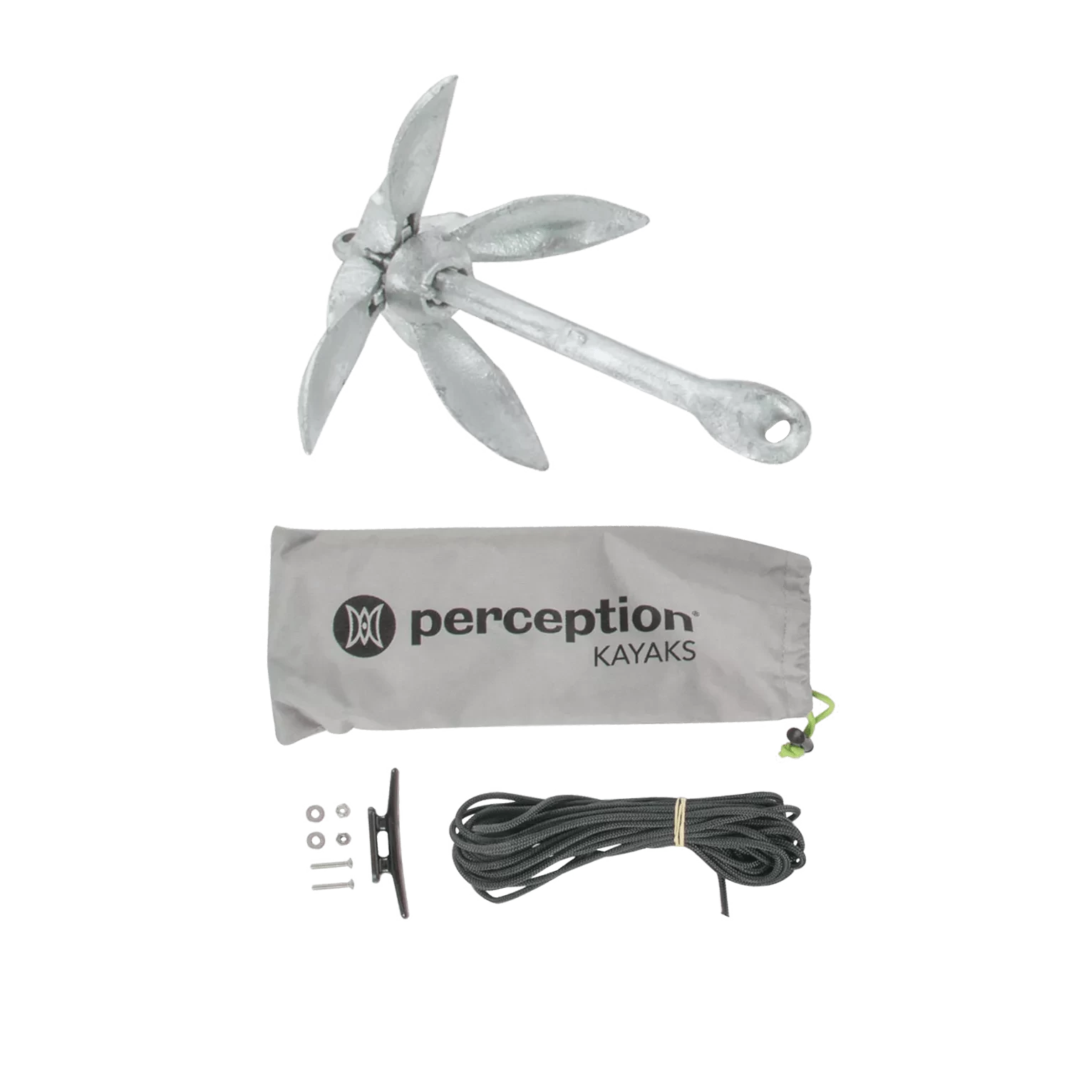 Whether out fishing, taking pictures, or just admiring the scenery, this anchor kit keeps your kayak firmly anchored. With a durable galvanized construction and a folding 4-fluke design, this anchor is versatile enough to work on all bottoms. The kit has a 30’ anchor line, a cleat with mounting hardware, and a convenient storage bag for easy transport and storage. Measuring 12” x 12 1/2” and weighing only 3 lb, it’s compact enough to fit in your kayak’s storage compartment. Designed to work with all Perception sit-in and sit-on-top recreational kayaks, this anchor kit is a must-have accessory for any kayaker. Upgrade your anchoring experience with the optional Anchor Trolley Kit for added convenience and control in windy or current conditions.