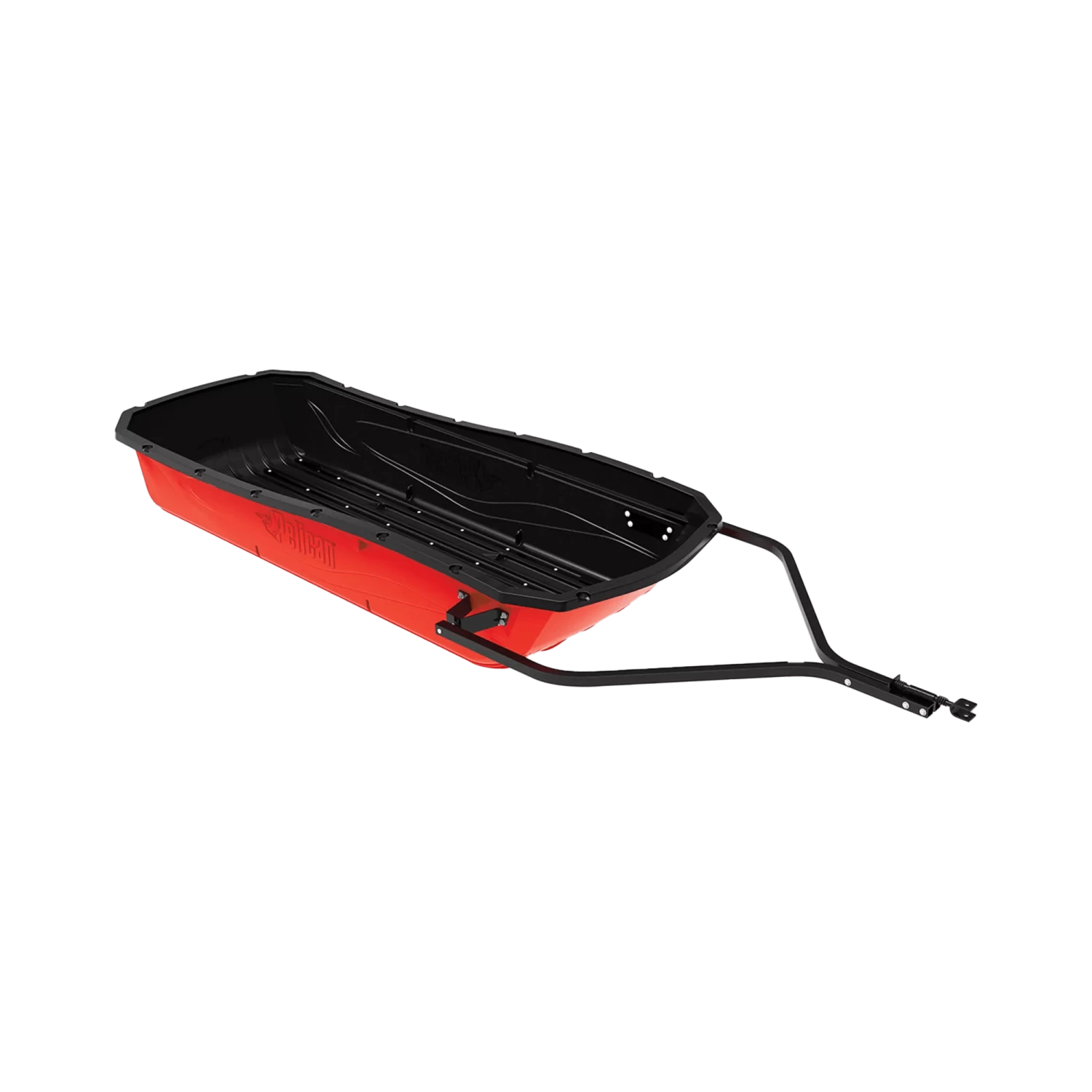 Bring your gear with confidence with the Trek Sport 94 utility sled. Its 700 lb capacity means plenty of room for everything you need to haul. This robust utility sled comes with no-maintenance HDPE runners, a shock-absorbing metal tow hitch and an adjustable travel cover so you can easily tow it to a snowmobile or ATV.